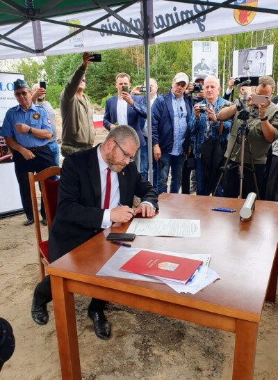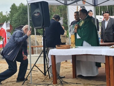 Na wmurowanie kamienia węgielnego pod uwięziony pomnik przyjechało wiele osób z całej Polski. Były łzy wzruszenia i podziękowania wójtowi za jego niezłomną postawę. Mszę św. celebrował ks. Tadeusz Izakowicz-Zalewski.